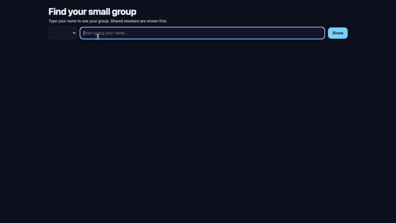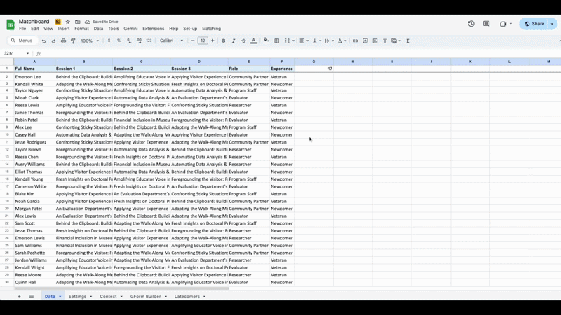 Instead of users looking for their information in the spreadsheet, now they can simply enter their name into Matchboard and see: